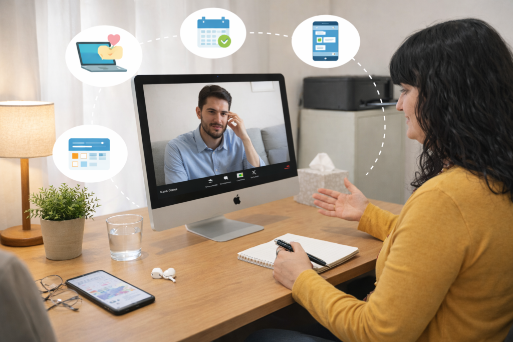 La terapia de psicología online es un proceso sencillo y efectivo. A través de plataformas seguras y confidenciales, como videollamadas o mensajes encriptados, puedes conectarte conmigo, Blanca Jorge, y comenzar tu viaje hacia el bienestar emocional.